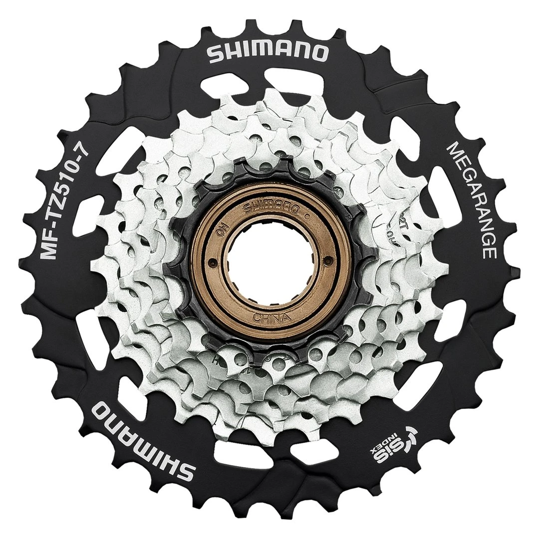 Der Shimano MF-TZ510-7 Schraubkranz ist mit Zink-Plattierung und schwarzer Beschichtung am größten sowie kleinsten Ritzel noch korrosionsbeständiger als sein Vorgänger MF-TZ500.